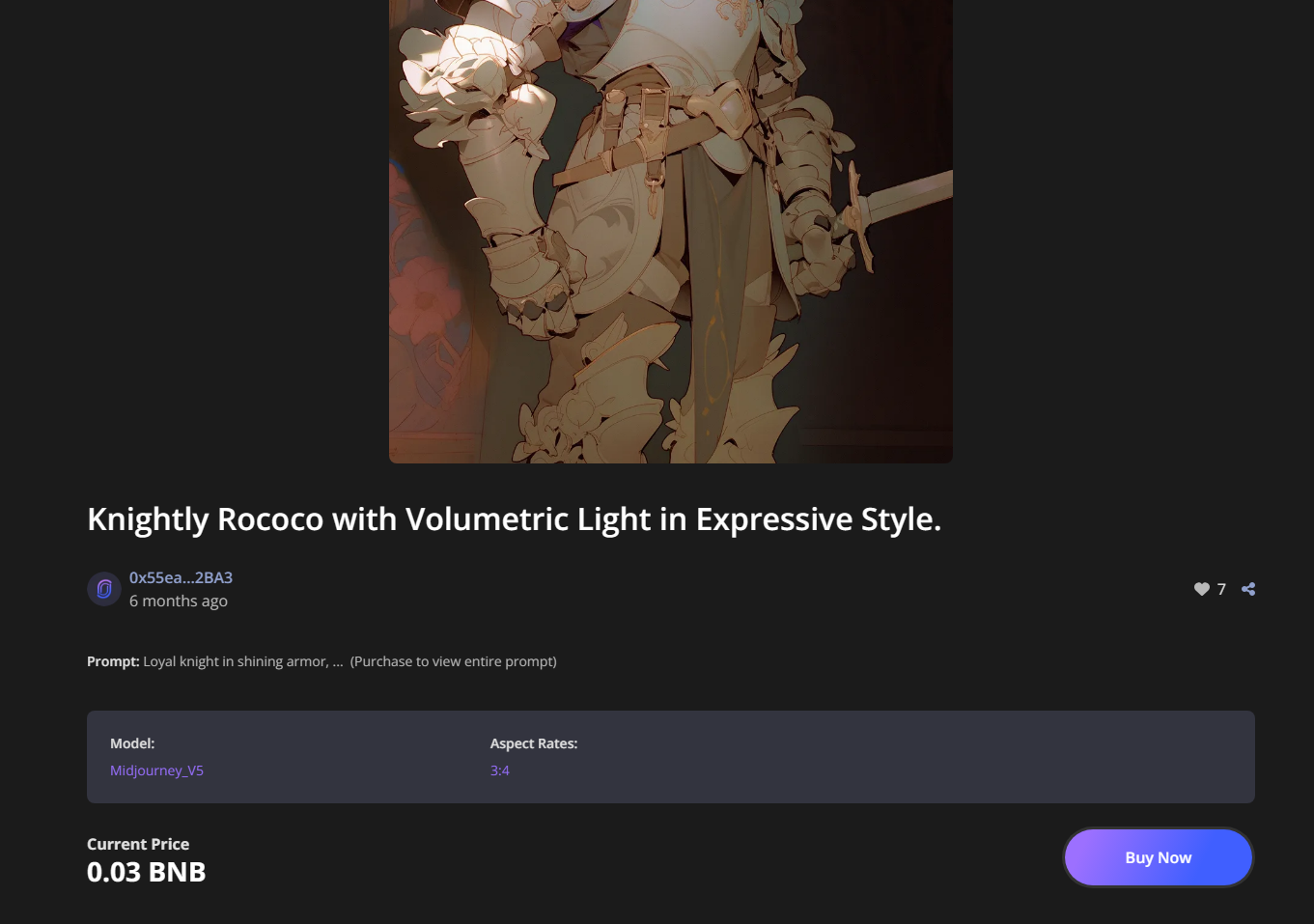 This takes you to the information page for the NFP you've chosen. Clicking the 'Buy Now' button would prompt a wallet transaction.
